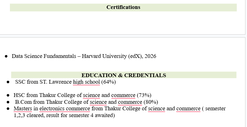 Properly listing EdX certifications highlights continuous learning and industry-relevant expertise.